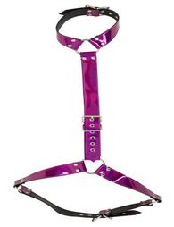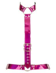 Το πιο hot πράγμα στο γυμνό δέρμα: μια φούξια ιριδίζουσα μεταλλική αγκράφα που φοριέται γύρω από το λαιμό και τη μέση. Και οι τρεις ιμάντες (λαιμός, μπροστά, μέση) ρυθμίζονται ξεχωριστά για τέλεια εφαρμογή. Πολυουρεθάνη, μέταλλο.