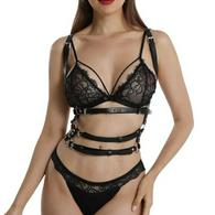 Harness Punk Bra, Piele Ecologica, Negru, S-L,  JGF Lingerie
