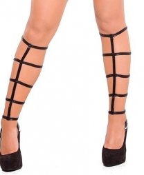 Latex Black Overknees Fancy Fashion black overknees with decorative front lacing and net...