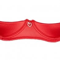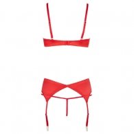 Passionate, hot red 3 pieces lingerie set from Cottelli Germany. The set includes a padded shelf bra with wires for more support, suspender belt with 4 suspender straps and a matching string with invitingly open crotch area. The bra and the suspender with elegant rhinestone decoration.