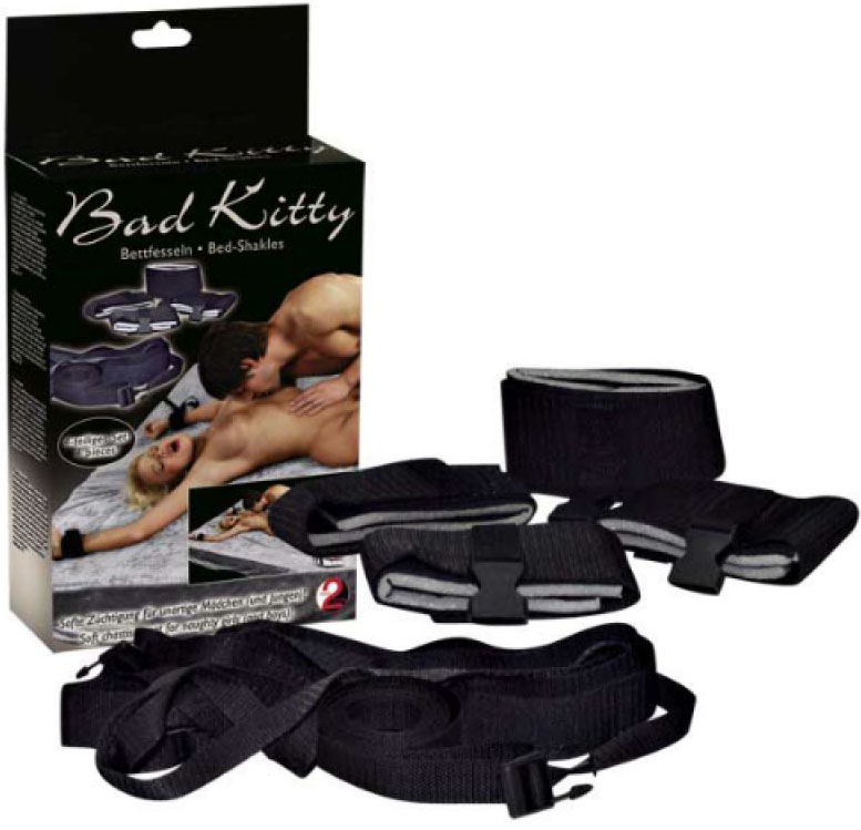Συσκευασία που περιλαμβάνει μία βάση για το κρεβάτι μήκους 180 cm, δύο λουριά μήκους 320 cm το καθένα και τέσσερις χειροπέδες (2 για τους καρπούς, 2 για τους αστραγάλους). Τα λουριά είναι ενωμένα με την βάση. Τοποθετείται την βάση κάτω από το στρώμα του κρεβατιού και βάζετε τα λουριά πάνω στο στρώμα για να μπορέσετε να τα ενώσετε με τις χειροπέδες. Οι χειροπέδες έχουν έναν μηχανισμό με τον οποίο κουμπώνουν πάνω τα λουριά και είναι πολύ μαλακές. Τώρα το «θύμα» σας είναι δεμένο και αφημένο σε κάθε σας επιθυμία!