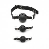 Σετ της FETISH FANTASY που αποτελείται από 3 φίμωτρα διαφορετικού μεγέθους S,M,L που κουμπώνουν εναλλάξ σε δερμάτινο ρυθμιζόμενο λουρί. Ο Ball Gag συστήματος κατάρτισης είναι ιδανικό για αρχάριους που είναι νέοι στο να φιμώνονται , αλλά και αρκετά ευέλικτο για να ικανοποιήσει τους πιο προχωρημένους. Το σύστημα εκπαίδευσης 3-gag σας επιτρέπει να ξεκινήσετε με ένα μικρό gag και σταδιακά  μέχρι το μεγαλύτερο, - και να πάει από ήπια έως άγρια, όπως σας πρόοδο! Κάθε gag είναι κατασκευασμένο από μη τοξικό πλαστικό και εφοδιασμένο με οπές για να αναπνέετε εύκολα. Το ανθεκτικό μαύρο λουράκι από vinyl προσαρμόζεται εύκολα για να ταιριάζει στα περισσότερα μεγέθη, δίνοντάς σας άμεσο έλεγχο για το πότε και πόσο συχνά o εραστή σας θα μιλάει. Θα διδάξετε στον σύντροφό σας το νόημα της υποβολής . Ιδανικά για BDSM απολαύσεις. Περιλαμβάνετε και μια μάσκα ματιών.