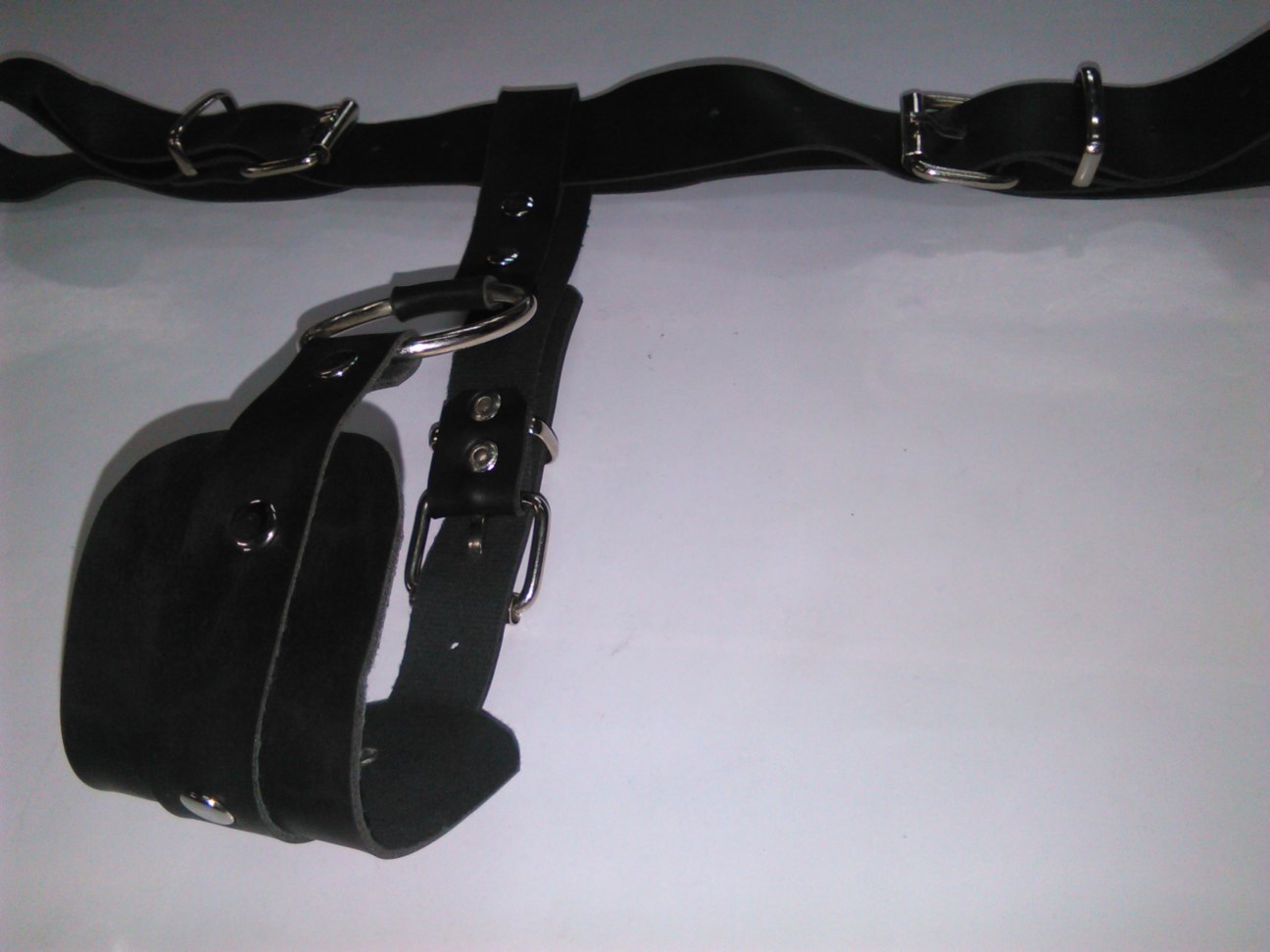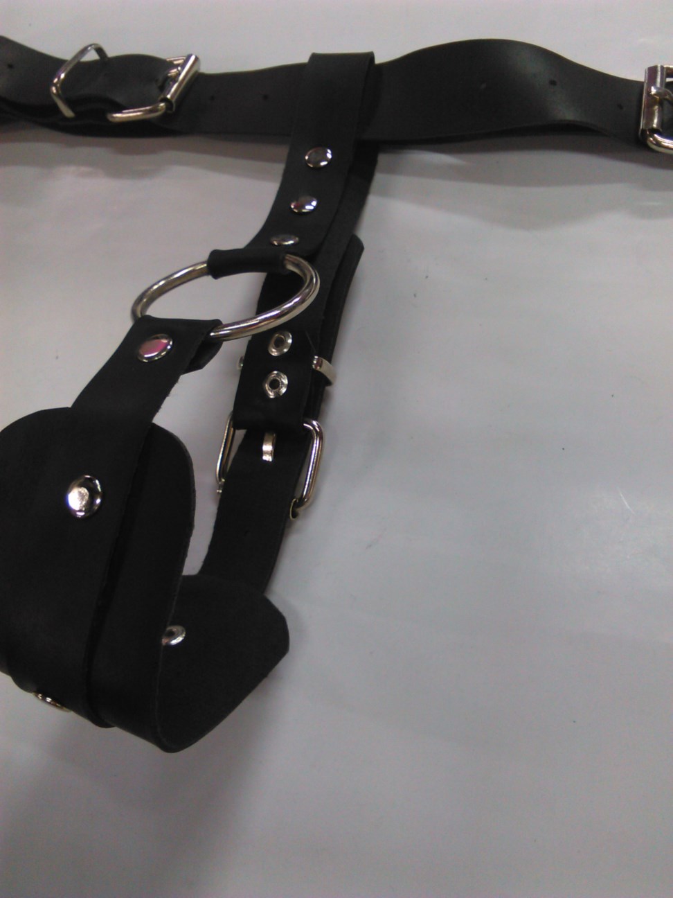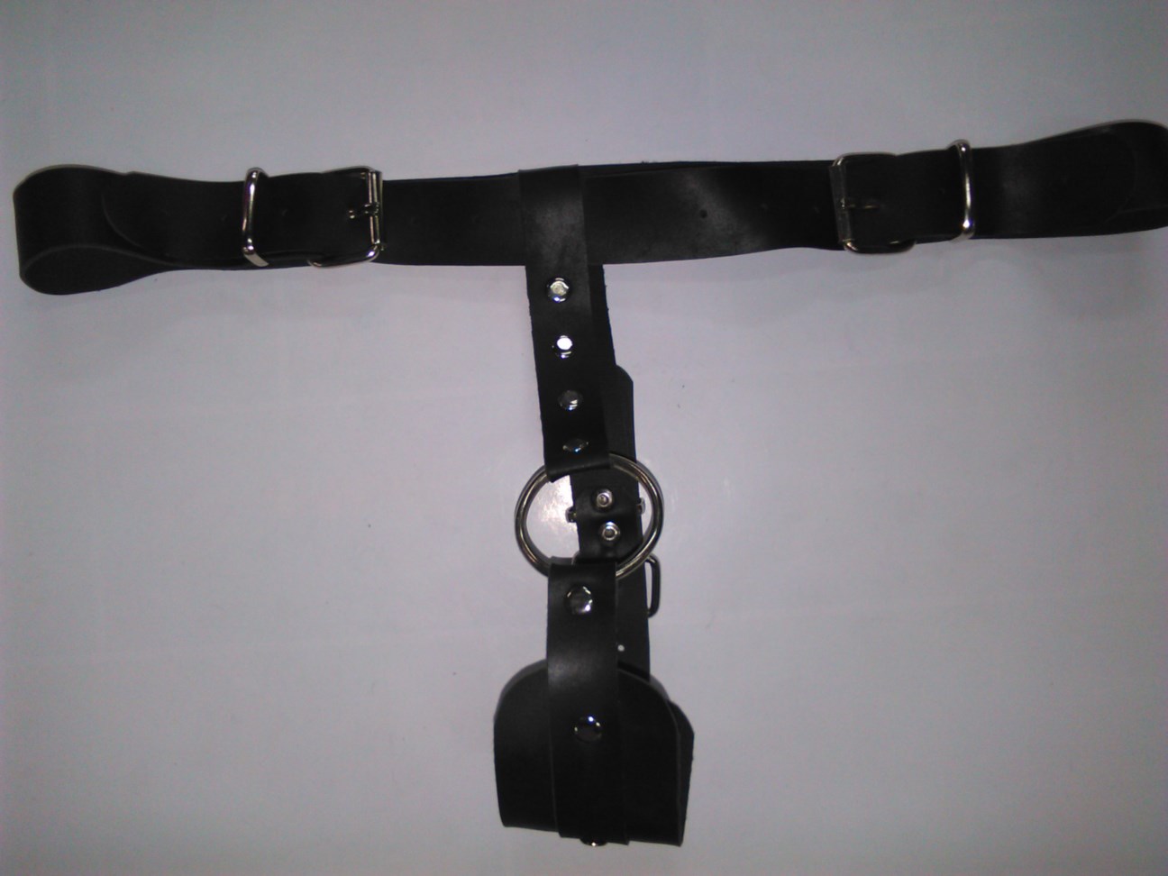 Ανδρικό αξεσουάρ από δέρμα και υλικά άριστης ποιότητος και αντοχής. Ανδρικό στρινγκ Τ με μεταλλικό κρίκο για το πέος και με ρυθμιζόμενο λουρί από κάτω. Στην ζώνη έχει δυο τόκες προσαρμογές για να ταιριάζει σε όλα τα σώματα. Αλλάξτε τους κανόνες υπέρ σας.