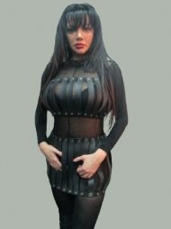 Γυναικείο σετ που περιλαμβάνει ένα τοπάκι και μια φούστα. Είναι από δέρμα και υλικά άριστης ποιότητος και αντοχής. Πάνω στις ελαστικές οριζόντιες λουρίδες πιάνονται τα κάθετα λουράκια φάρδους 2.5 cm. Φορέστε το με ένα ολόσωμο κολάν σε μια έξοδό σας ή χωρίς τίποτα σε μια ερωτική στιγμή σας.