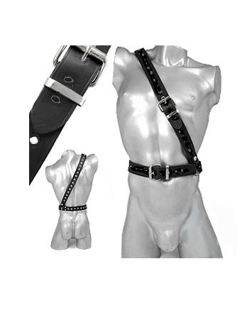 Ανδρικό αξεσουάρ από δέρμα και υλικά άριστης ποιότητος και αντοχής. Διακοσμητικά λουριά για το στήθος φάρδους 3 cm και με ρυθμιζόμενες τόκες. Δώστε δυναμισμό στην εμφάνιση σας και εκπλήξτε ευχάριστα τον-την παρτενέρ σας.