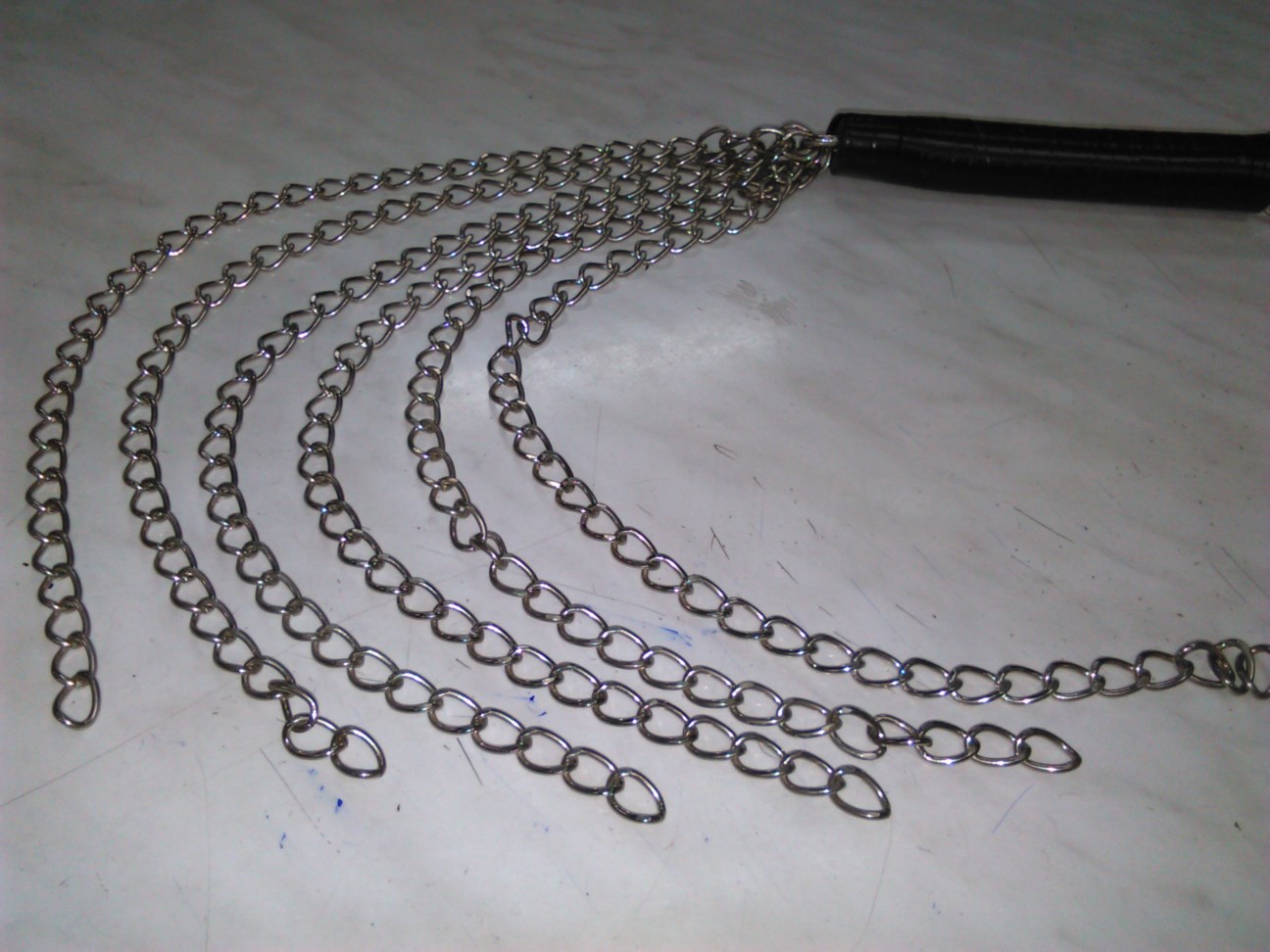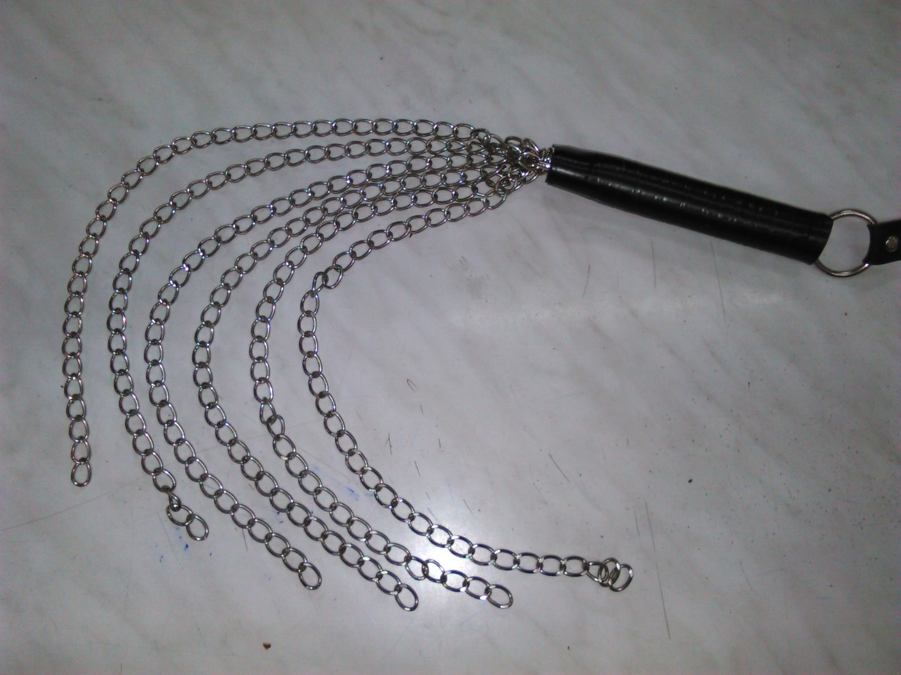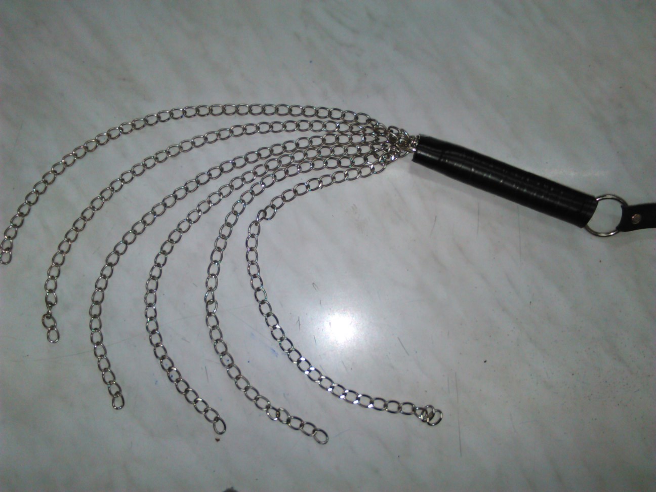 Μαστίγιο με αλυσίδες και από υλικά άριστης ποιότητος και αντοχής. Έχει συνολικό μήκος 60 cm, διαθέτει λαβή 15 cm, με μεταλλικό κρίκο στην αρχή και με 6 αλυσίδες μήκους 45 cm η καθεμία.