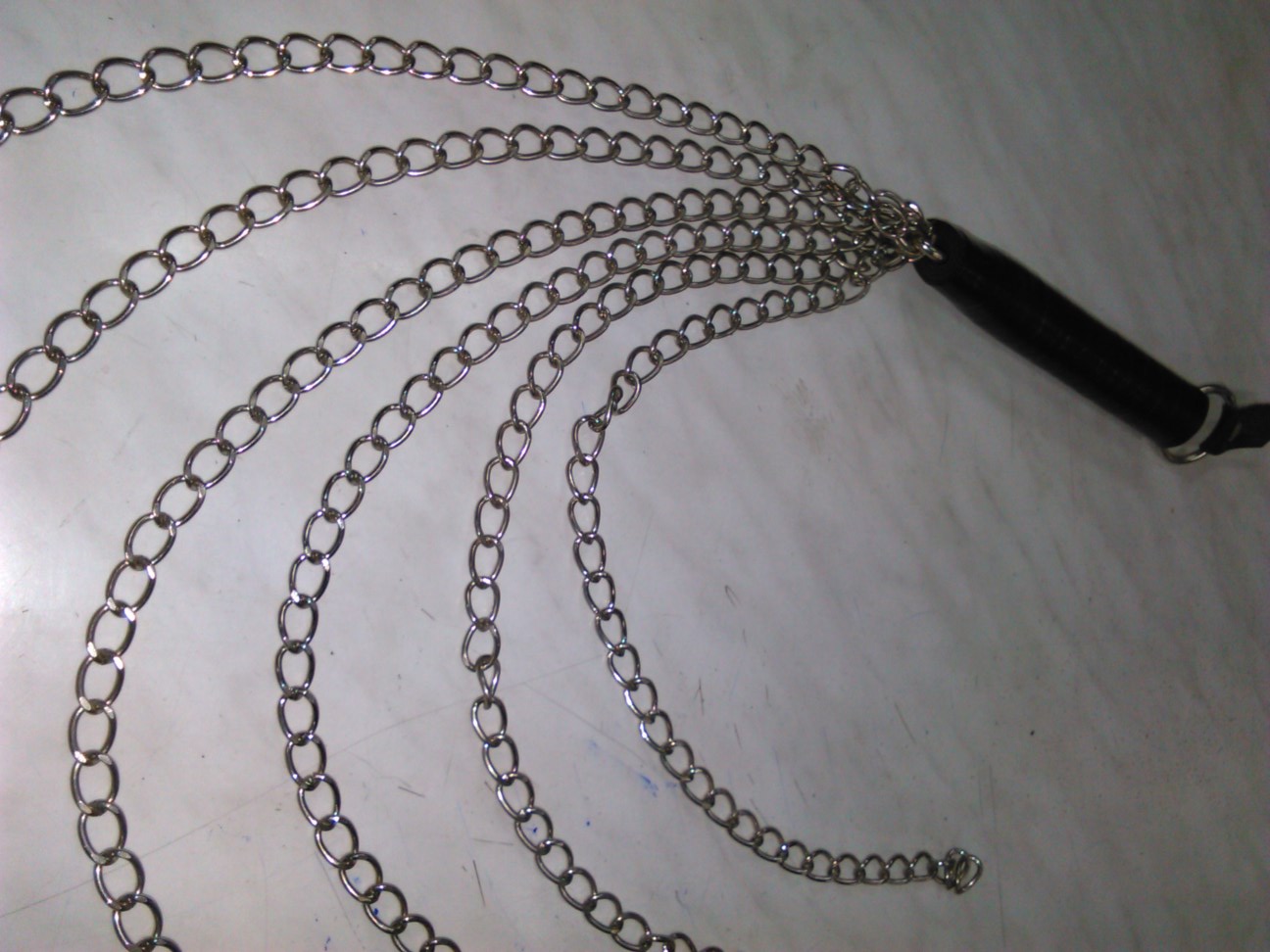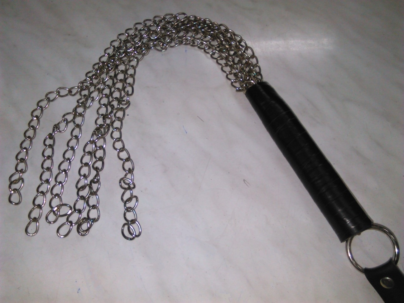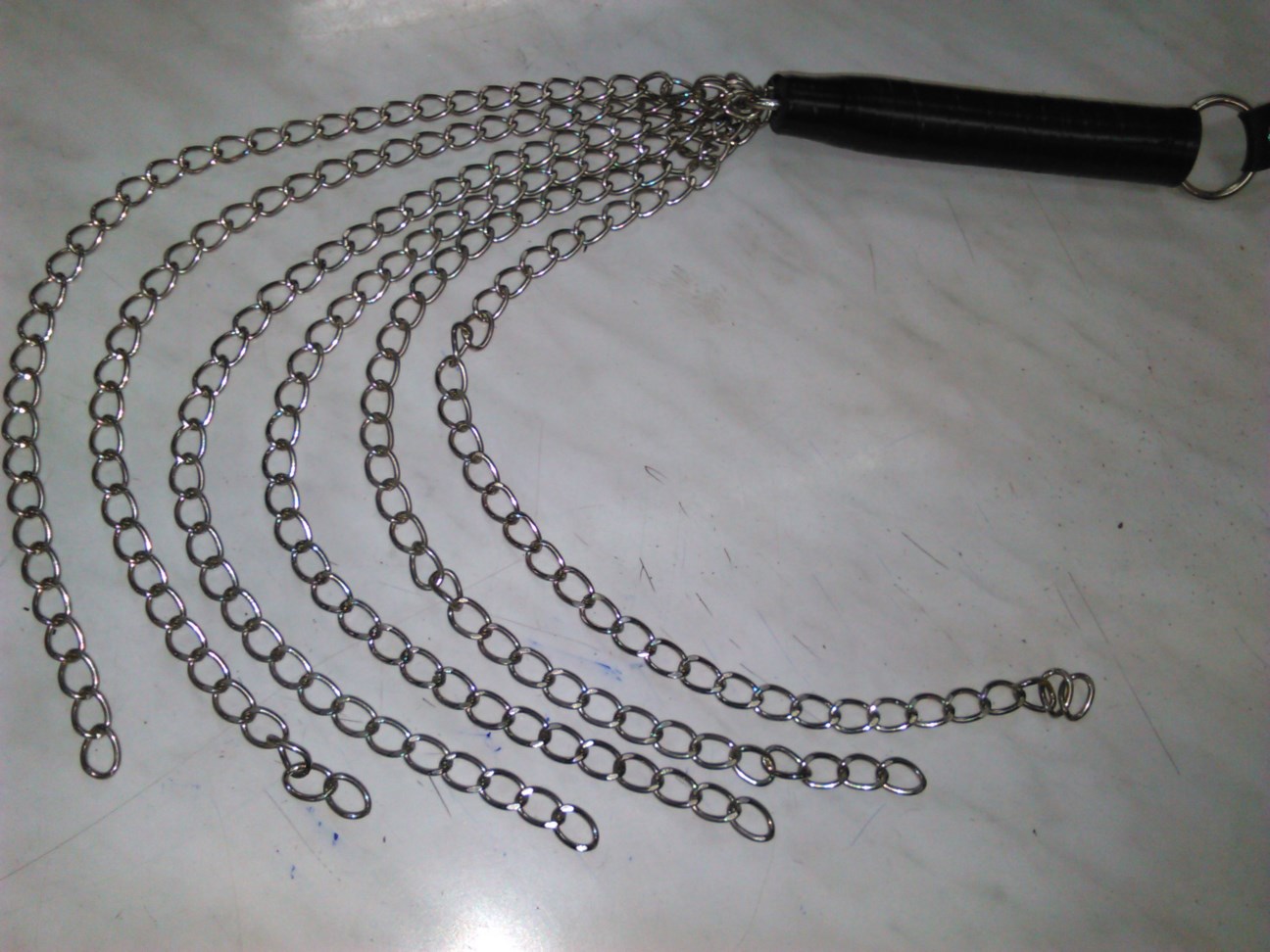 Μαστίγιο με αλυσίδες και από υλικά άριστης ποιότητος και αντοχής. Έχει συνολικό μήκος 60 cm, διαθέτει λαβή 15 cm, με μεταλλικό κρίκο στην αρχή και με 6 αλυσίδες μήκους 45 cm η καθεμία.