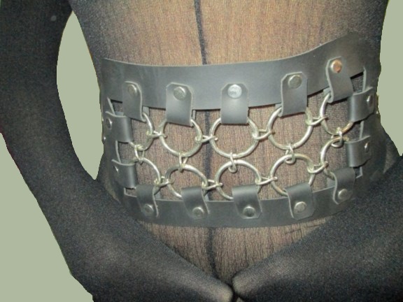 Γυναικεία ζώνη από δέρμα και υλικά άριστης ποιότητος και αντοχές. Κορσές - Ζώνη πλάτους 12 cm και μήκους 35 cm. Έχει 10 ενωμένα μεταλλικά κρικάκια έτσι ώστε να καλύπτει και να ομορφαίνει την κοιλιακή χώρα.