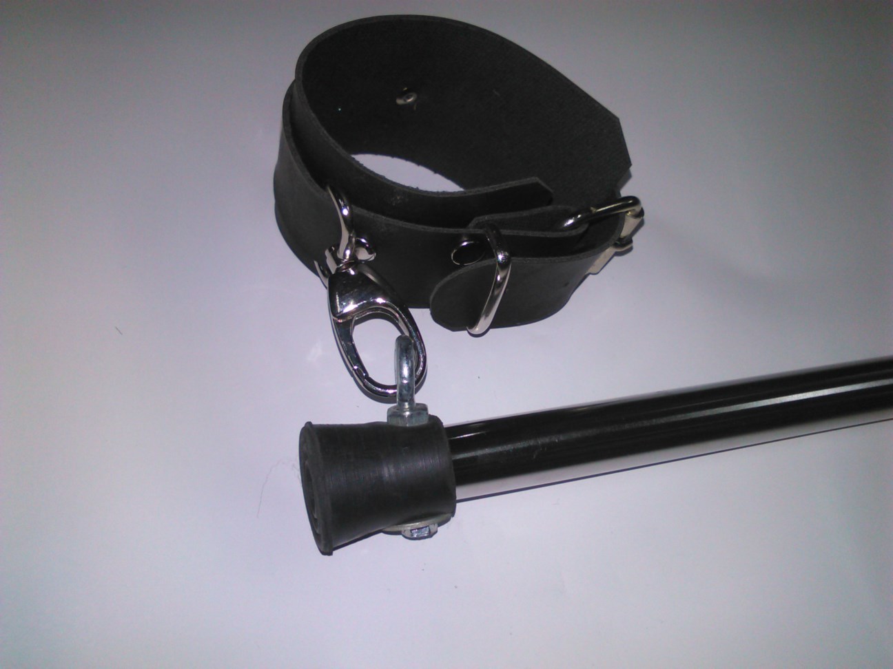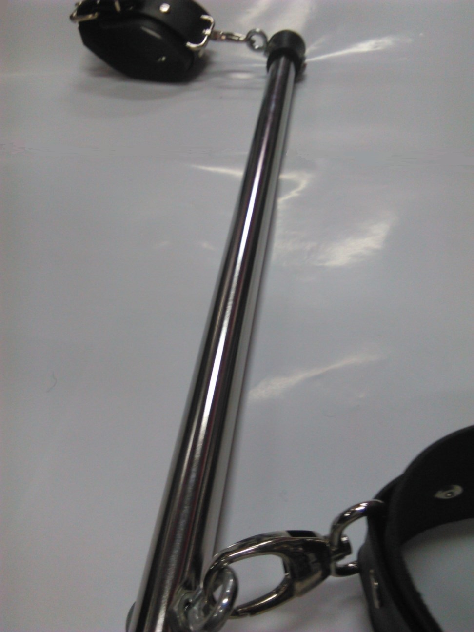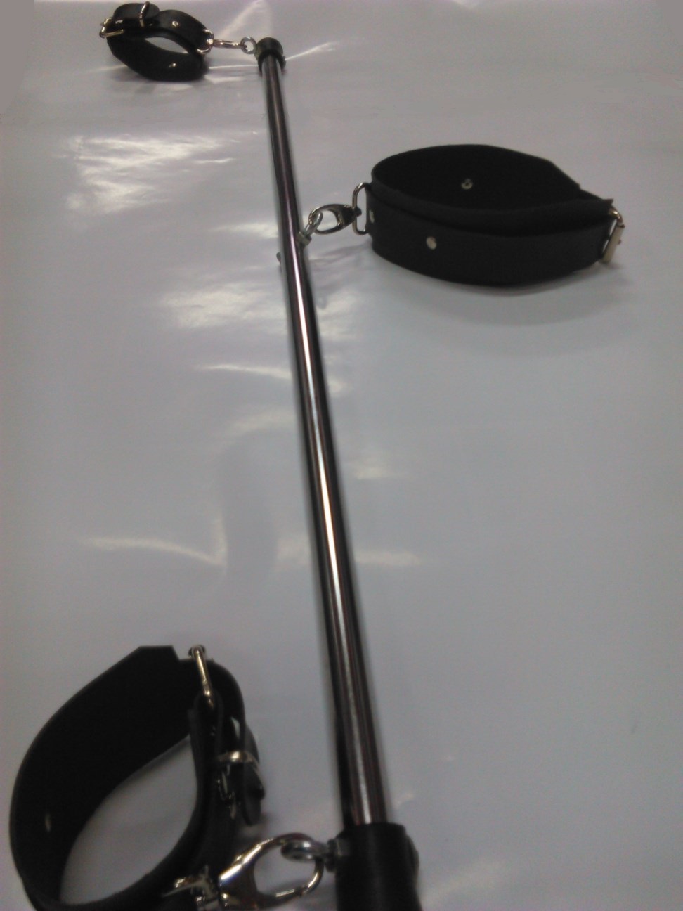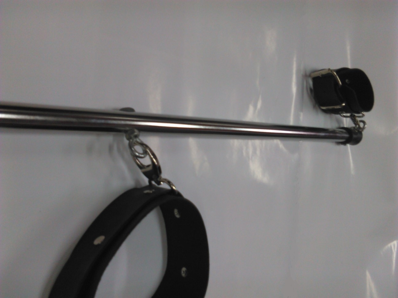 Σετ δεσίματος από δέρμα και υλικά άριστης ποιότητος και αντοχής. Αποτελείται από μια μεταλλική στρογγυλή μπάρα μήκους 80 cm. Έχει μεταλλικούς συνδετικούς κρίκους στα άκρα και στην μέση. Από τα άκρα πιάνονται οι χειροπέδες με συνδετικούς γάντζους που είναι από διπλό δέρμα φάρδους 6 cm και μήκους 32 cm, έτσι ώστε να ταιριάζουν και για δέσιμο ποδιών. Στην μέση έχει λαιμοδέτη-περιλαίμιο φάρδους 3 cm που πιάνεται στον κρίκο με συνδετικό γάντζο. Αιχμαλωτίστε τον-την σύντροφο σας θέτοντας τους δικούς σας κανόνες στις ερωτικές δραστηριότητες σας.