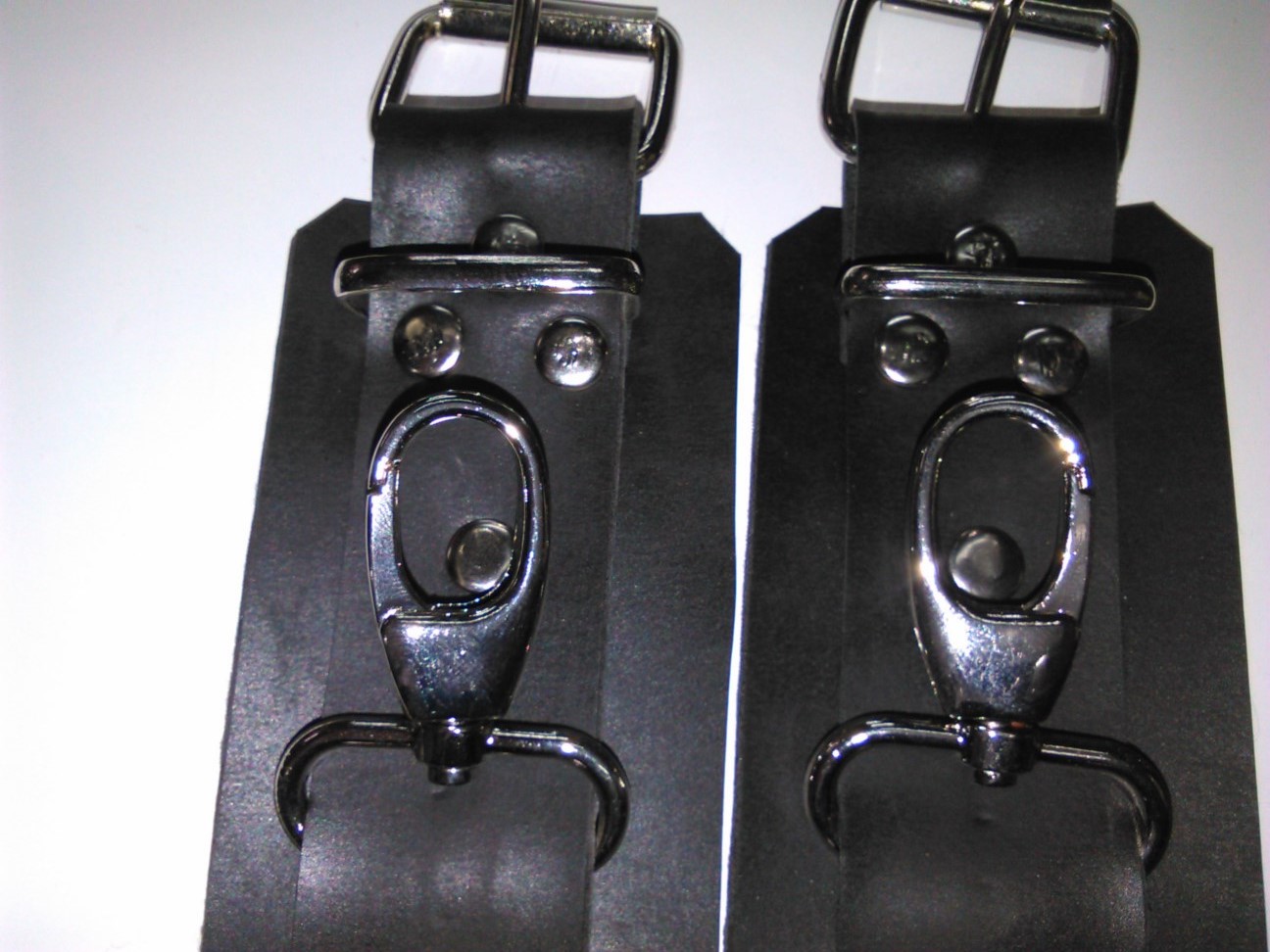 Σετ δεσίματος από δέρμα και υλικά άριστης ποιότητος και αντοχής. Αποτελείται από 2 ζευγάρια χειροπέδες που είναι ανεξάρτητες και αποσπώμενες για τα πόδια και τα χέρια. Είναι με διπλό δέρμα φάρδους 6 cm + 3 cm και με μήκος 28 cm για τα χέρια και 3 2cm για τα πόδια. Έχουν επίσης μεταλλικούς συνδετικούς γάντζους η κάθε μια. Διαθέτει έξτρα αξεσουάρ με μεταλλικό χοντρό κρίκο με δερμάτινα λουριά και σε σχήμα σταυρού που συνεχίζουν με αλυσίδα και καταλήγουν σε μεταλλικό κρικάκι.