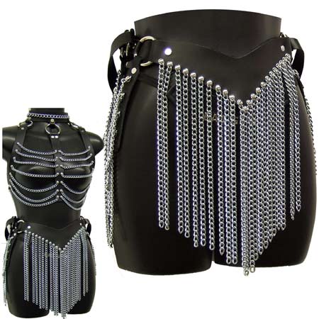 Γυναικείο αξεσουάρ από δέρμα και υλικά άριστης ποιότητος και αντοχής. Πολύ εντυπωσιακό και μοναδικό για εσάς που δεν κάνετε εκπτώσεις σε αυτό που επιθυμείτε. Ένας σχεδιαστικός συνδυασμός, δέρματος και αλυσίδων, που αγκαλιάζουν το κορμί σας και σας ταξιδεύουν σε άλλη διάσταση!