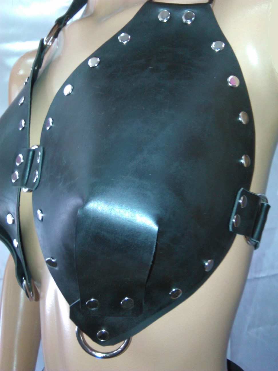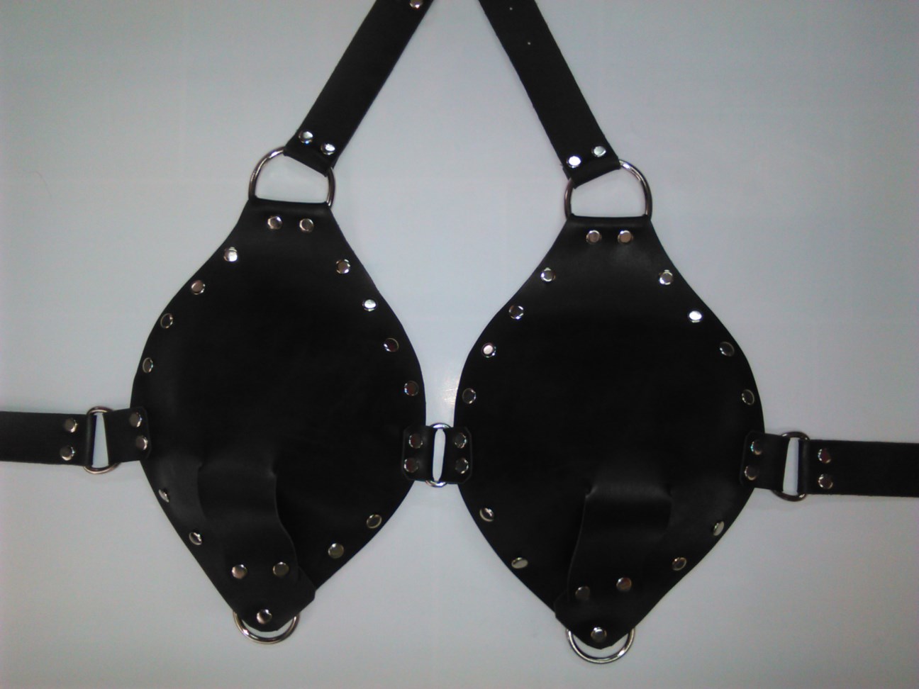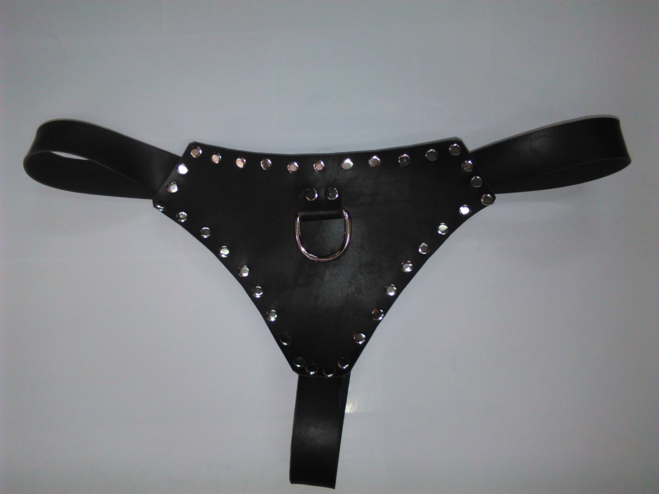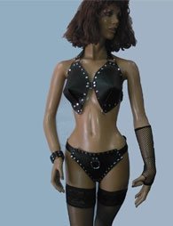 Γυναικείο σύνολο που περιλαμβάνει ένα σουτιέν και ένα στρινγκ. Είναι από δέρμα και υλικά άριστης ποιότητος και αντοχής. Φετίχ εμφάνιση και νέες διαδρομές στις ερωτικός σας αταξίες. Το σουτιέν έχει περιμετρικά ασημένια τρουκς που καλύπτει το στήθος σας και δίνει περισσότερο μυστήριο στην σκληρή σας εμφάνιση. Το στρινγκ έχει έναν μεταλλικό χοντρό κρίκο στο κέντρο διακοσμείται με ασημένια τρουκς.