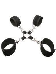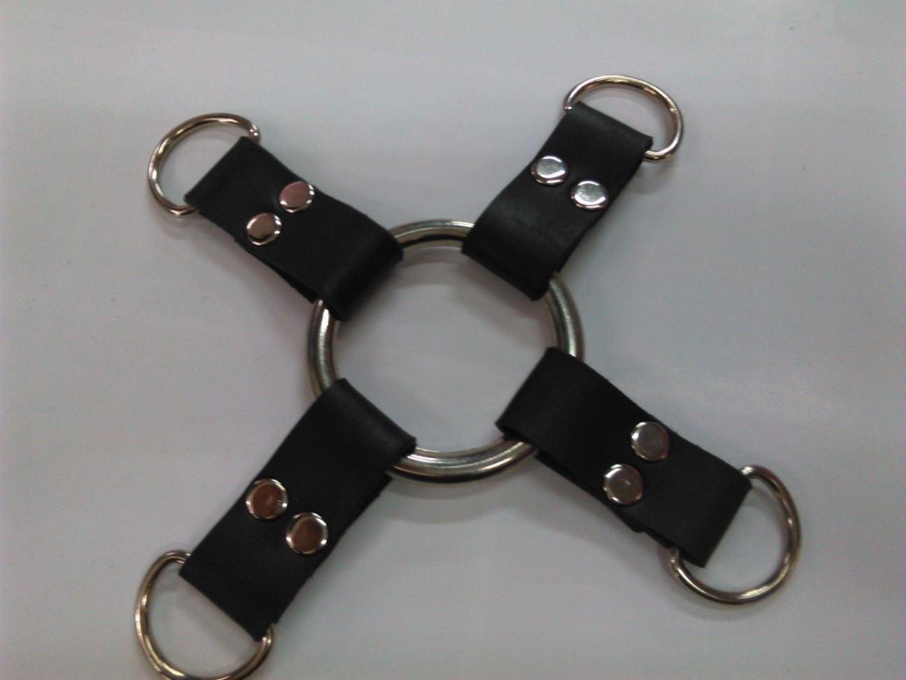 Τέσσερις δερμάτινες χειροπέδες για τα χέρια και τα πόδια που είναι ανεξάρτητες και αποσπώμενες. Είναι με διπλό δέρμα φάρδους 6 cm και συνολικού μήκους 32 cm. Διαθέτει έναν κεντρικό μεταλλικό κρίκο με τέσσερα μικρά σε μήκος λουράκια που έχουν κατάληξη σε μικρό μεταλλικό κρίκο έτσι ώστε να μπορούν να πιάνονται οι χειροπέδες.