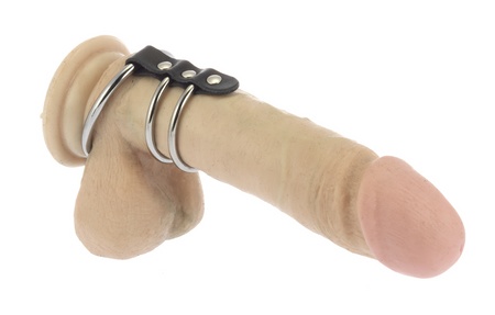 Δακτυλίδι πέους 3 μεταλλικούς κρίκους και με δερμάτινα ενωτικά. Το πρώτο έχει διάμετρο 5,5 cm και είναι ο πιο αποτελεσματικός αφού πιάνει τους όρχεις και το πέος εξασφαλίζοντας δυνατότερες στύσεις και μεγαλύτερη διάρκεια στην ερωτική επαφή. Οι άλλοι δυο έχουν διάμετρο 3,5 cm και κρατάνε πιο σταθερό το πέος. Είναι ενωμένα με δερμάτινο λουράκι.