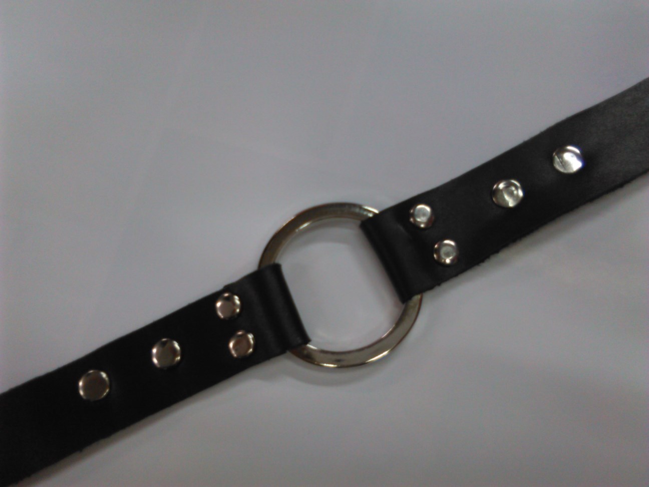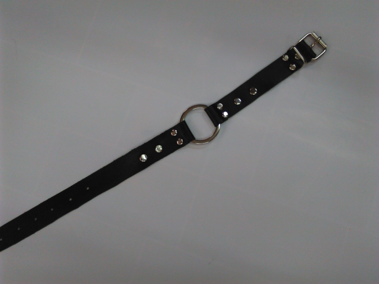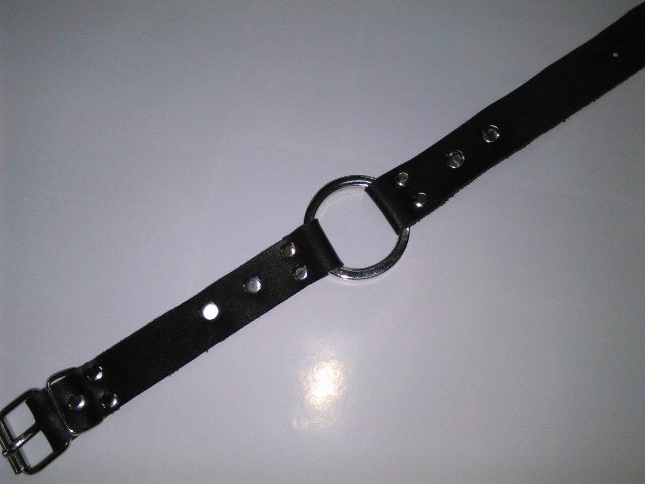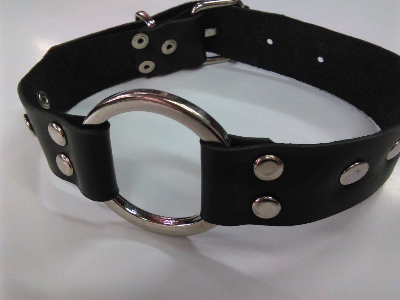 Μαλακό δερμάτινο φίμωτρο με κρίκο διαμέτρου 4 cm που σφίγγει με δερμάτινο λουράκι των 2.5 cm.