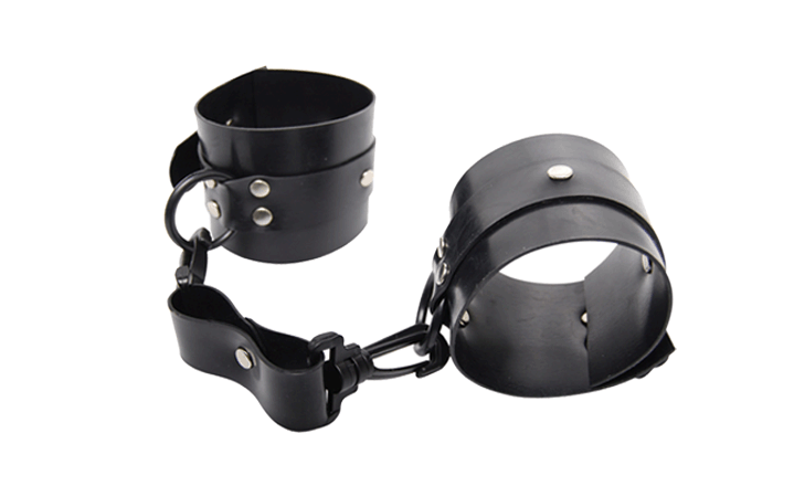 Δερμάτινες χειροπέδες που είναι ανεξάρτητες-αποσπώμενες, με διπλό δέρμα φάρδους 6 cm και 2.5 cm και με κρίκο η καθεμιά. Διαθέτει έξτρα λουράκι με πλαστικούς συνδετικούς γάντζους στις άκρες για να συνδέονται και να δένονται οι χειροπέδες. Ελαφρύ και διακριτικό δέσιμο.