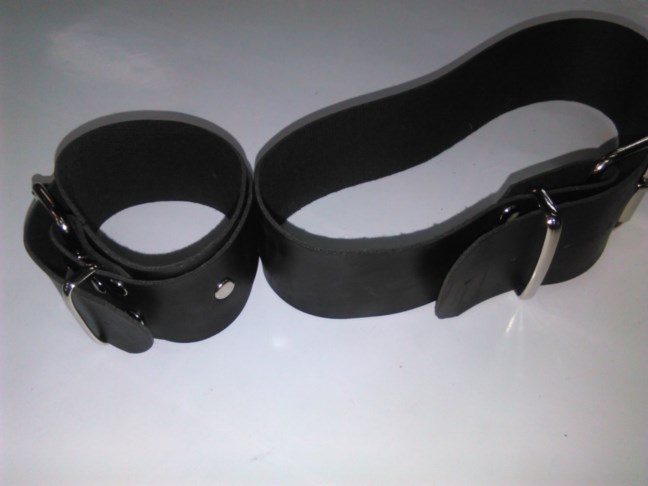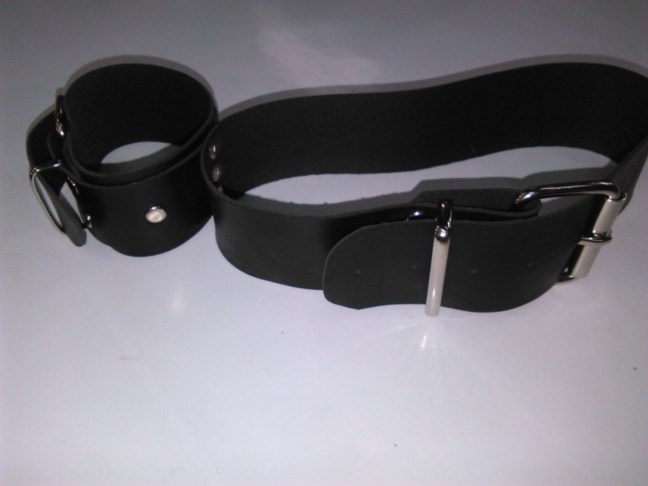 Σετ δεσίματος από δέρμα άριστης ποιότητος και αντοχής. Αποτελείται από ένα λουρί για κάθε πόδι πλάτους 3 cm και μήκους 60 cm. Συνδέεται με τόκα. Στα πλάγια έχει ένα συνδεδεμένο λουρί πλάτους 3 cm και μήκους 32 cm με συνδετική τόκα σαν χειροπέδα.