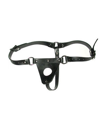 Δερμάτινη Ζώνη Strap-on για γυναίκα που έχει τρύπα στο κέντρο έτσι ώστε να μπορούν να ταιριάζουν όλα τα ομοιώματα με βεντούζα, όρχεις και βάση. Έχει δυο τοκάδες ρυθμιζόμενες στα πλάγια και ένα από κάτω. Ουσιαστική και πρακτική λύση στα ιδιαίτερα σεξουαλικά σας παιχνίδια για να έχετε την απόλυτη επιτυχία.