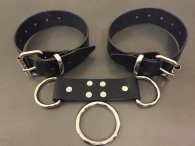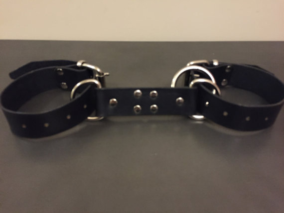 Χειροπέδες από δέρμα και υλικά άριστης ποιότητος και αντοχής. Έχουν φάρδος 3 cm, είναι ανεξάρτητες-αποσπώμενες και ενώνονται με δυο τρόπους. Μπορούν να ενωθούν με ένα λουράκι μήκους 10 cm που έχει δυο μεταλλικούς κρίκους στις καταλήξεις του. Στους κρίκους μπαίνουν τα λουράκια για τις χειροπέδες για να έχουν μεγαλύτερη απόσταση. Επίσης μπορούν να ενωθούν και με έναν μεγάλο μεταλλικό κρίκο για πιο κοντά και πιο δυναμικά. Μπορείτε να τις χρησιμοποιήσετε και για τα πόδια.