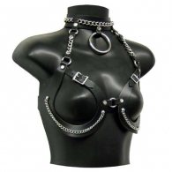 Δερμάτινο γυναικείο αξεσουάρ που αγκαλιάζει το στήθος και τονίζει καλύτερα τις γραμμές του. Έχει ένα δερμάτινο λουράκι γύρω από το στήθος, διακοσμημένο με μια αλυσίδα και ενώνεται με το περιλαίμιο με μια πιο χοντρή αλυσίδα.