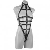 BDSM Γυναικείο κορμάκια από δέρμα και με περιλαίμιο. Το κορμάκι έχει κάθετα και οριζόντια λουριά φαρδους 2,5 cm ενώ το περιλαίμιο έχει φάρδος 3 cm. Δίνουν μια γεωμετρική ομορφιά στο σώμα σας και οδηγούν σε νέες κατευθύνσεις στα ερωτικά παιχνίδια σας.
