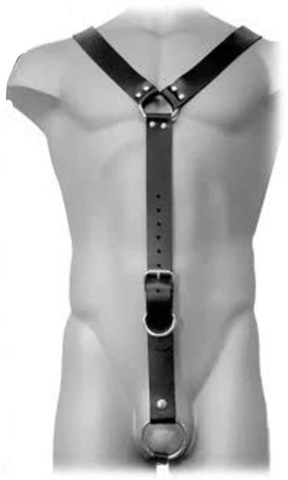 Δερμάτινο ανδρικό αξεσουάρ με μαύρα λουριά φάρδους 4 cm και με μεταλλικό κρίκο πέους στην κατάληξη. Ένα πρακτικό και ουσιαστικό ανδρικό αξεσουάρ.