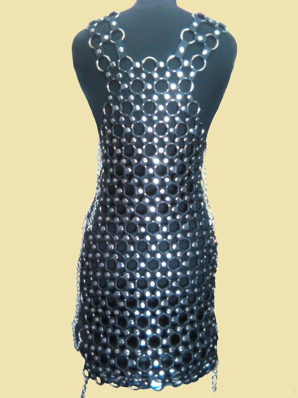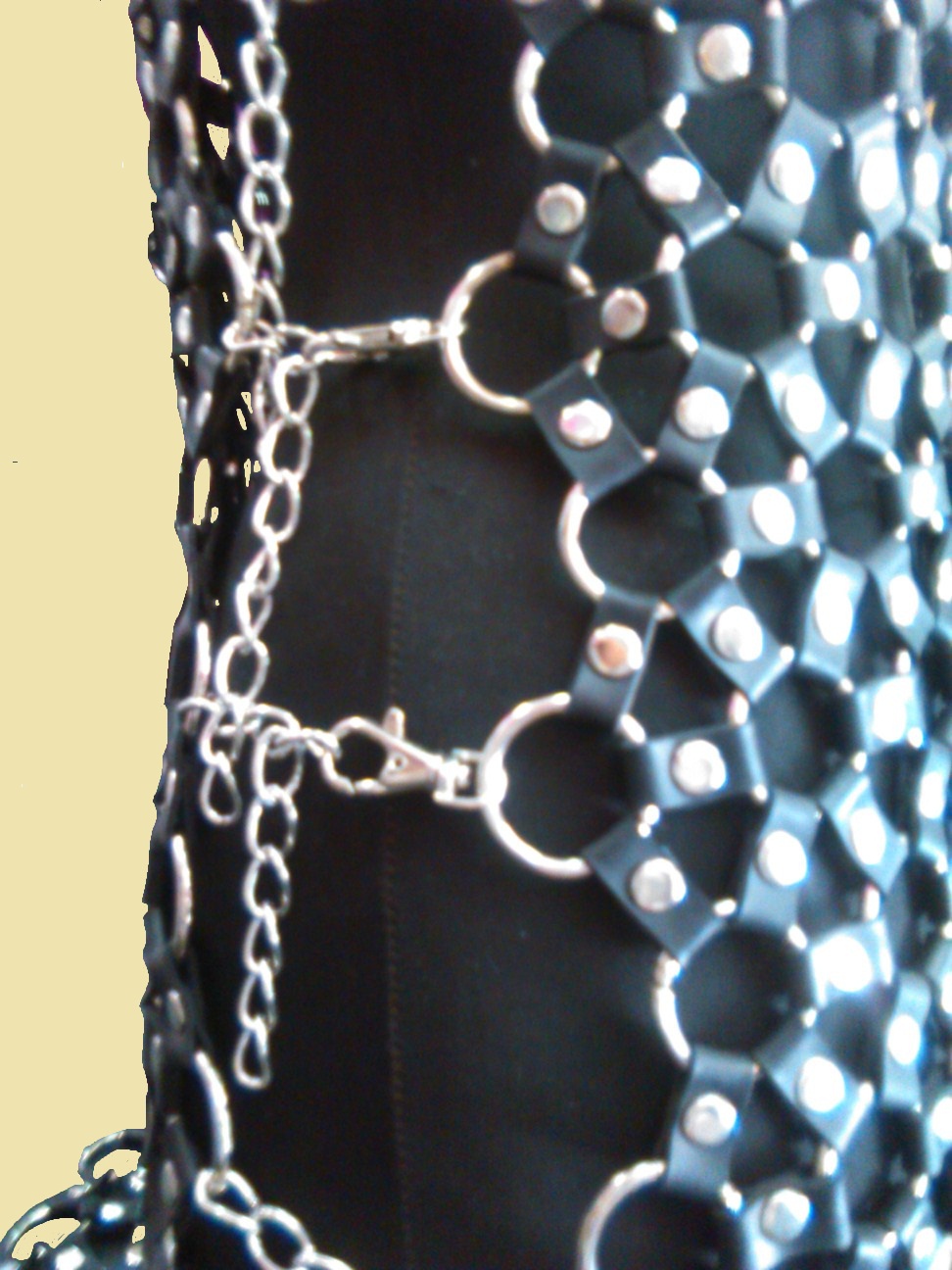 Φόρεμα από δέρμα και υλικά άριστης ποιότητος και αντοχής. Είναι κατασκευασμένο από 260 ενωμένους μεταλλικούς κρίκους και στα πλάγια δένεται με ενωτικές αλυσίδες. Είναι one size.
