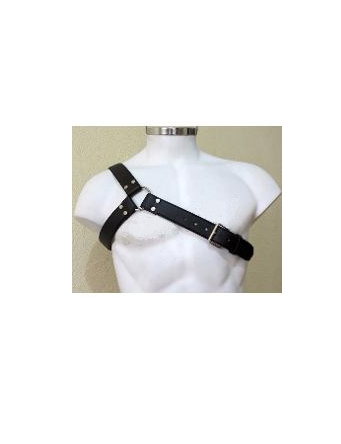 BDSM Ανδρικό δερμάτινο τοπ με λουρια φάρδους 4 cm. Έχει πιάσιμο στον ένα ώμο, ενώνεται σε ένα μεταλλικό κρίκο και ένα λουρί διασχίζει το στήθος. Απλό αξεσουάρ αλλά έξυπνο καθώς δείχνει και σηματοδοτεί τι ακριβώς εσείς επιθυμείτε.