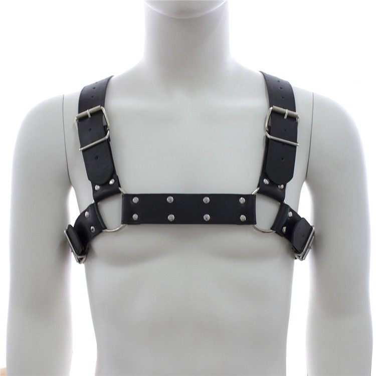 BDSM Δερμάτινο ανδρικό τοπ με λουριά φάρδους 4 cm. Έχει 4 προσαρμοζόμενες τόκες και 2 μεταλλικούς κρίκους στο στήθος. Ένα αξεσουάρ που σηματοδοτεί δυναμισμό και νέες κατευθύνσεις στα ερωτικά παιχνίδια σας!