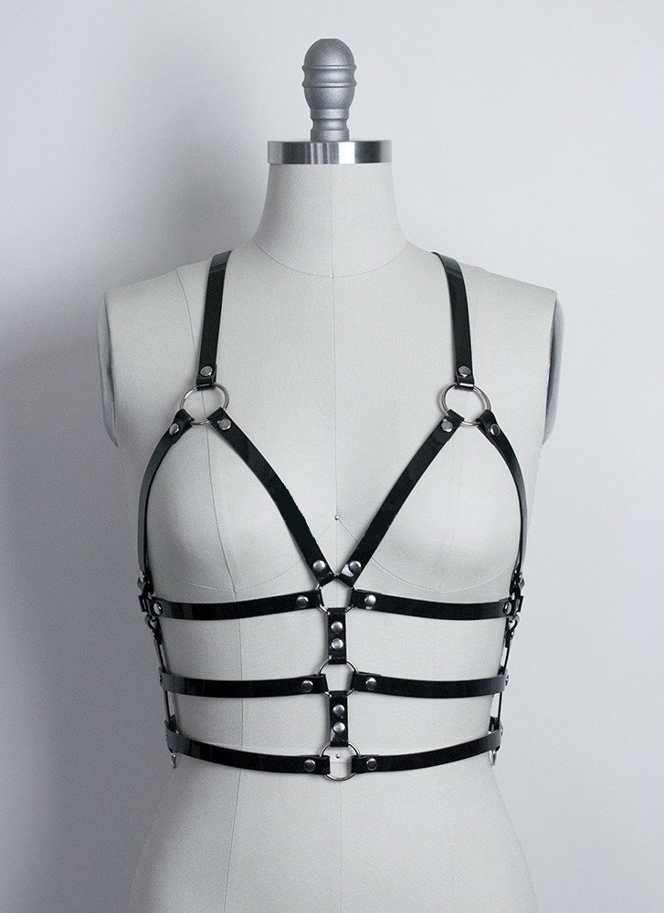 BDSM Δερμάτινο μπούστο με άνοιγμα στο στήθος και με διακοσμητικά λουριά. Τα λουριά έχουν φάρδος 2cm, ξεκινούν κάτω από το στήθος και διαθέτουν 3 δεσίματα.