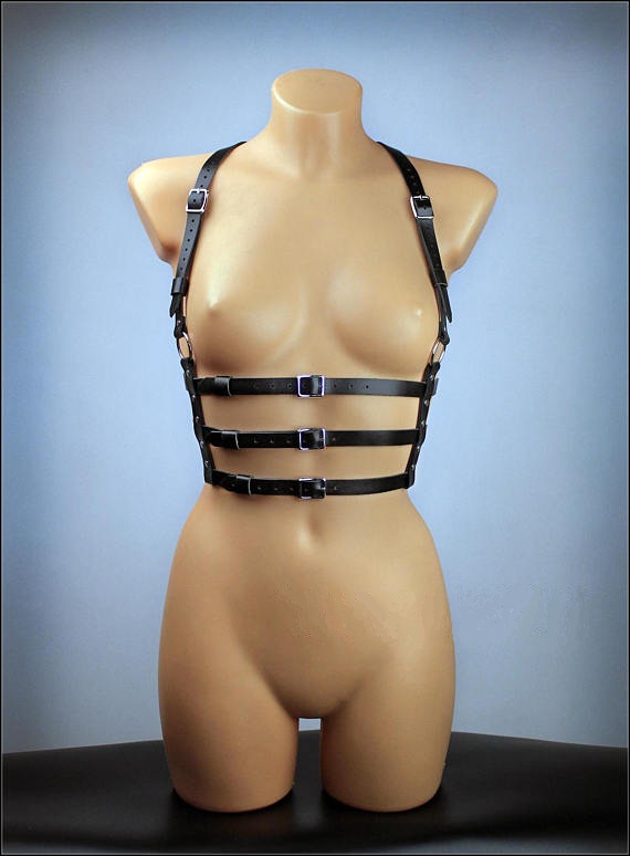 BDSM Δερμάτινο γυναικείο τοπάκι με άνοιγμα στο στήθος. Αποτελείται από 3 ζώνες κάτω από το στήθος με λουριά φάρδους 2,5 cm και 2 cm, και με ρυθμιζόμενες τιράντες που πιάνουν στα πλάγια. Μπορείτε να το φορέσετε χωρίς ρούχα σε κάποια ερωτική στιγμή σας ή πάνω από τα ρούχα σας σαν ιδιαίτερο και εντυπωσιακό πρωτότυπο αξεσουάρ. Είναι one size.
