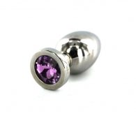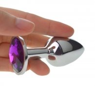 Ασημί, ατσάλινη μικρού μεγέθους πρωκτική σφήνα με μοβ διαμαντάκι διαμαντάκι στο πισω μερος
