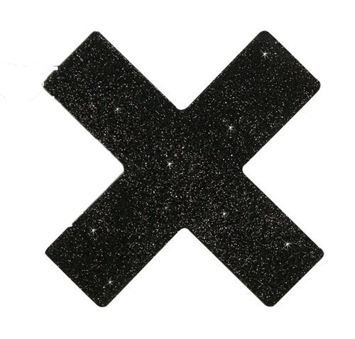 Sparkling black X-shaped nipple stickers.