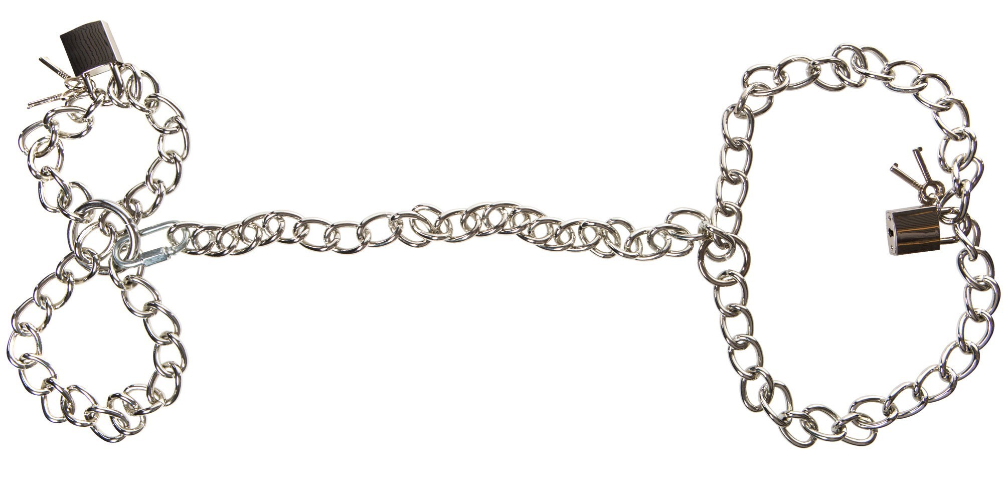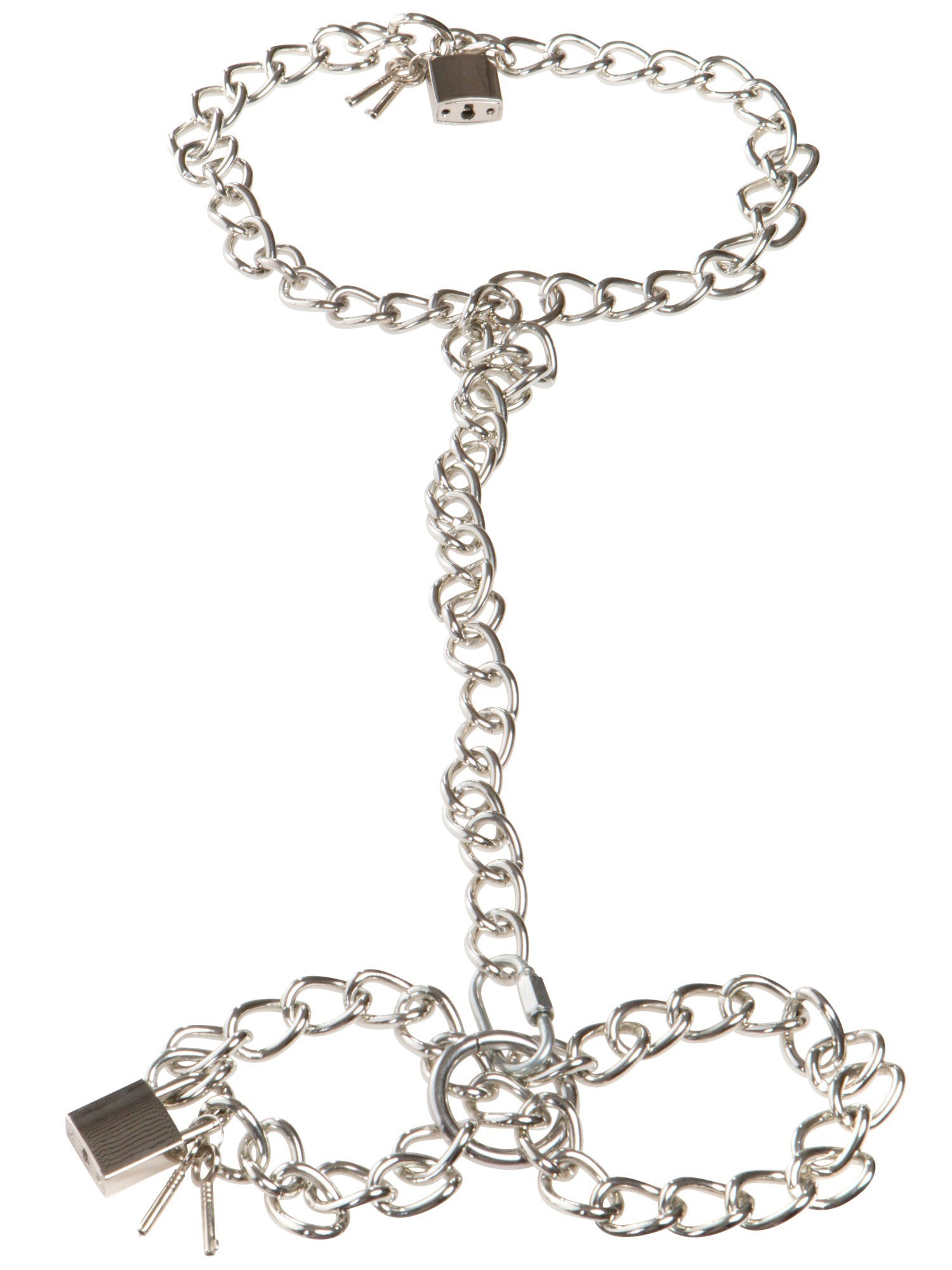 Δεμένη στις αλυσίδες για να νιώσει! Τρία σε ένα - Βαριά μεταλλική αλυσίδα, κολάρο, λουρί και χειροπέδες.