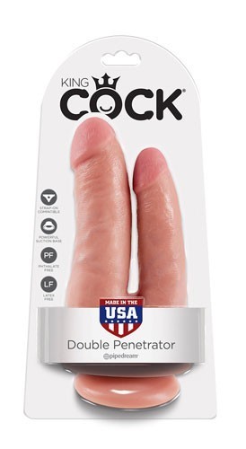 Διπλό ομοίωμα πέους για κολπική και πρωκτική διείσδυση με σταθερή βεντούζα και με συνολικό μήκος 21 cm.Έχει ρεαλιστική μορφή με προσοχή στην λεπτομέρεια κατασκευής του, είναι εύκαμπτο, από PVC υλικό, άοσμο και υποαλλεργικό.