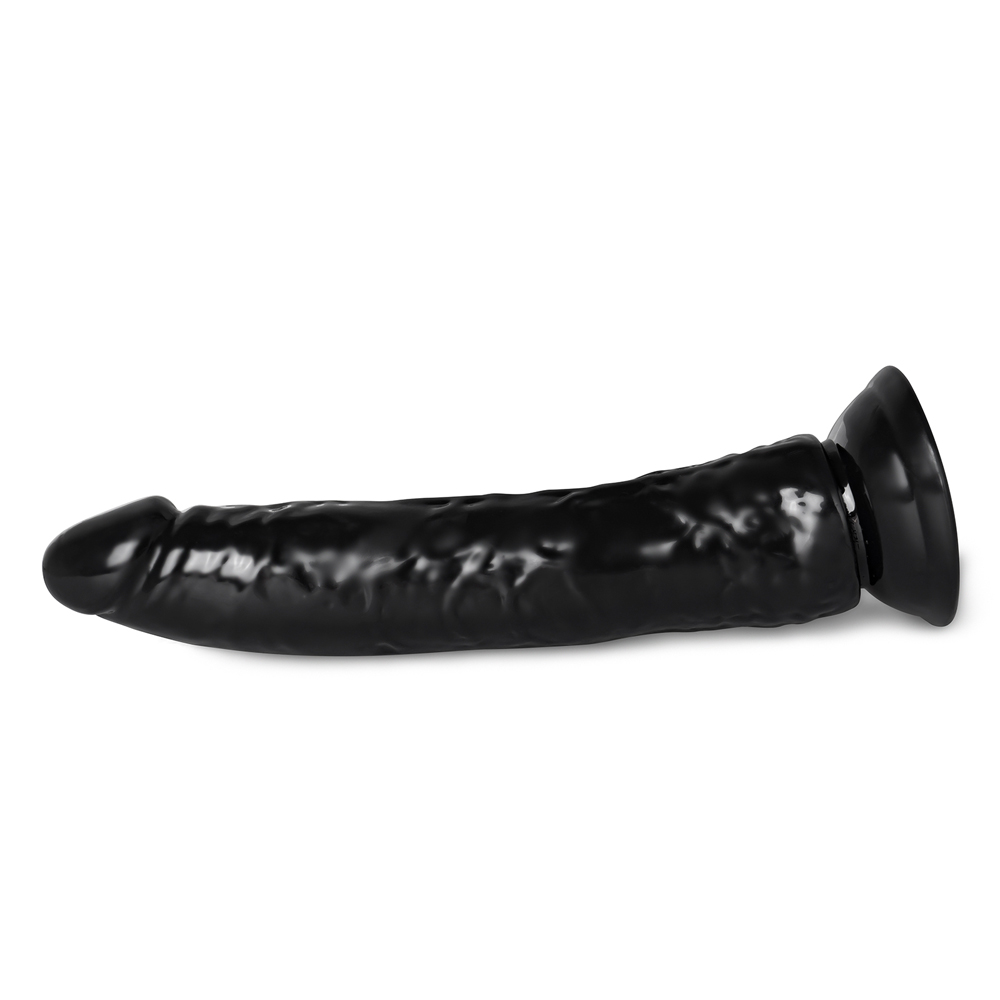 8.3'' Black Realistic Dildo, realistic looking and feel. Stong suction base, Phthalates and Latex free, Harness compatible.