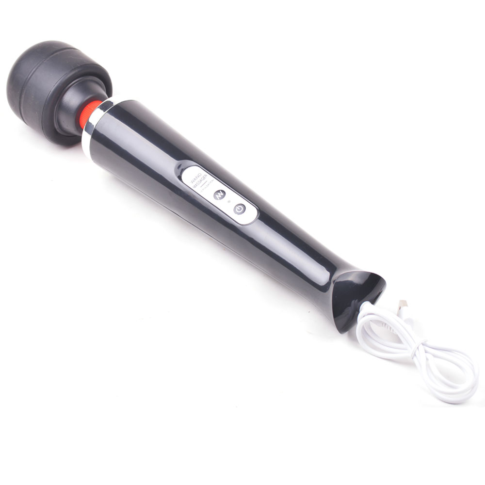 Black Color 10-Speed USB Rechargeable Magic Wand Massager (USB Recharging), medical grade silicone. Phthalate & Latex free.
