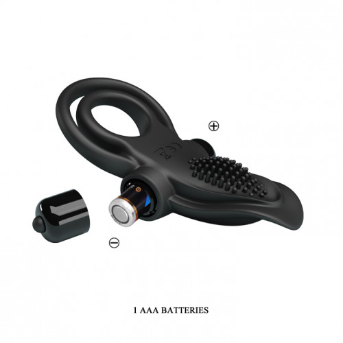 Διπλό δαχτυλίδι πέους και όρχεων με γλώσσα για να μεταφερει την ισχυρή δόνηση στην κλειτορίδα Pretty Love Vibrant Penis Ring. Ενα μεγεθος, Ελαστικότατο, Σιλικονάτο δαχτυλίδι με αυτιά, το οποίο φοριέται άνετα και γρήγορα. Με δόνηση τοσο στο πεος ( μεταφερει την δονηση μεσα στο πρωκτό η κολπο) οπως επισης και στην κλειτοριδα. Διαθετει δυο Δαχτυλους για καλυτερο και πιο σφυχτο κρατημα- ενα για το πεος και ενα για τους ορχεις