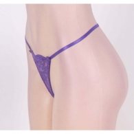 Tiny purple floral lace g-string with triangle transparent front and slender, low rise waist band. Tiny piece of lingerie for woman with big plans. The string is comfortable wear all day as well.