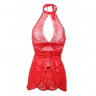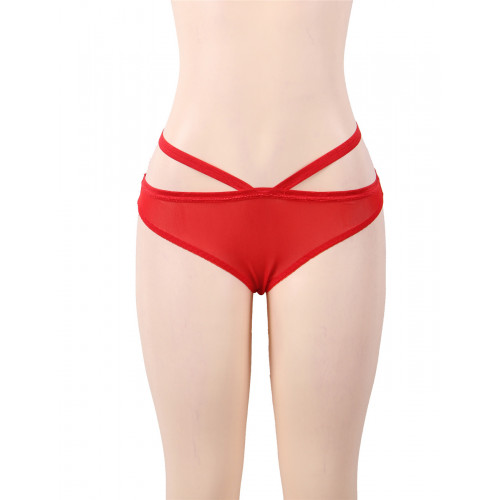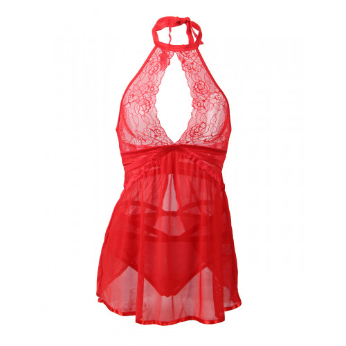 Wrap your body in this sexy red babydoll with matching thong. A must have piece of your lingerie collection. Soft flyaway mesh chemise with floral lace cups. The Floral lace cups with deep V cutout at the front will highlight the roundness of your breasts.