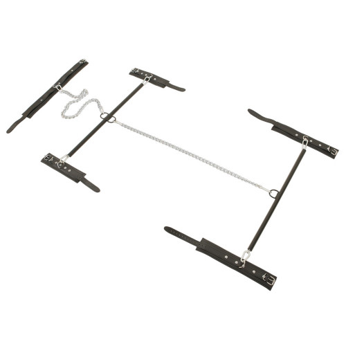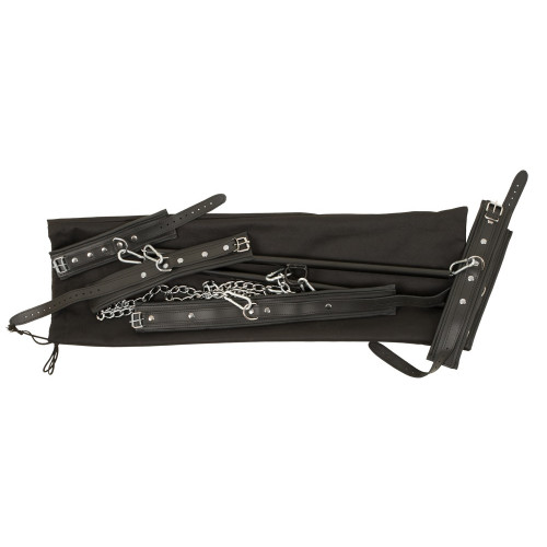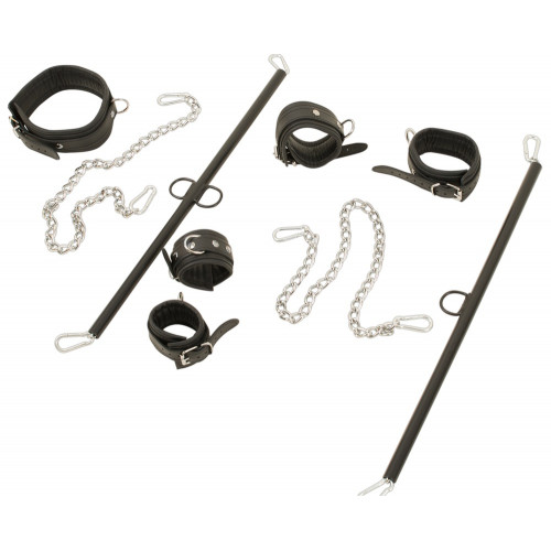 With this 9-part leather restraint set with massive bars the dominant part can take full control over the submissive partner.
