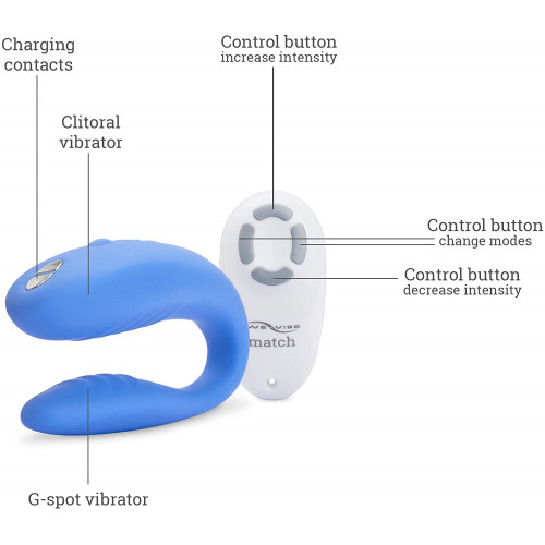 Ερωτικά παιχνίδια με την / τον σύντροφο, εντός και εκτός σπιτιού, αθόρυβα και απολύτως μυστικά, με απόσταση μέχρι και 10 μέτρων. Επαναφορτιζόμενος δονητής We-Vibe Match ερεθισμού της κλειτορίδας και σημείου g με ασύρματο τηλεχειριστήριο ιδανικό για προκαταρτικό σεξ και για μυστικά ερωτικά παιχνίδια εκτός σπιτιού. Κατασκευασμένο από καθαρή ιατρική σιλικόνη. Απόσταση δράσης του τηλεχειριστηρίου είναι τα 10 μέτρα. Ισχυρή δόνηση, διότι διαθέτει 2 μοτέρ δόνησης. Το πρώτο επικεντρώνεται στο σημείο g μέσα στο κόλπο και το δεύτερο εξωτερικά στην κλειτορίδα. Είναι αδιάβροχο για παιχνίδια στην ντουζιέρα και στην μπανιέρα. Τοποθετείται μέσα στον κόλπο και ταυτόχρονα εφάπτεται στην κλειτορίδα και μέσα στο εσώρουχο. Είναι Unisex sex toy. Μπορεί να χρησιμοποιηθεί για γυναικείο αυνανισμό άλλα και κατά την διάρκεια του σεξ γύρω από το πέους του αντρός όταν δέχεται στοματικό. Φορέστε το και απολαύστε μυστικά ερωτικά κόλπα και παιχνίδια! Συνδυάστε το μόνο με λιπαντικά που έχουν σαν βάση το νερό.