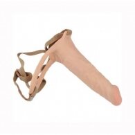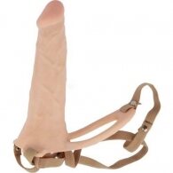The penis with pronounced head and veins made ouf of flexible high quality TPE material. The adjustable straps securly hold the toy. The extension can be used as a dildo as well.