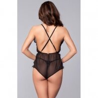 Sexy delicate black romper features a plunge neck, eyelash lace embellishment, split sides and a cross back. Adjustable straps make it comfortable to carry. Don't miss out on this fresh arrival – you need to have it!