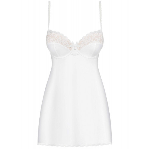 Beautiful white satin babydoll with padded, underwired cups. Elegant tulle with fabulous embroidery.