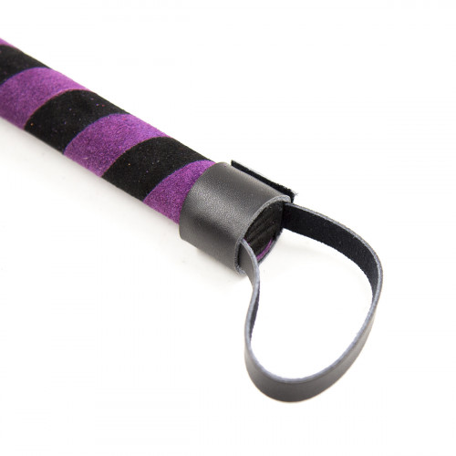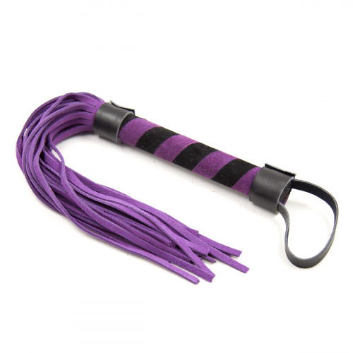 ερμάτινο φετιχιστιό Μώβ Μαύρο 100% αυθεντικό μαλακό Νούμποκ μαστίγιο τυπού αλογοουράς με 30 μαλακά λουριά. Ολικό μήκος 36 εκατοστά. Η χειρολαβή έχει μήκος 12 εκατοστά και διάμετρο Ø 2 εκ. Είναι επενδυμένο με δέρμα με δύο αποχρώσεις. Μαύρο και Μωβ.
