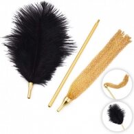 Χρυσό Φετιχιστικό μαστίγιο με μεταλλικά νήματα λουριάΑισθησιακή Μωβ πουπουλένια Γαργαλίστρα με ακρυλική χειρολαβή 17ε