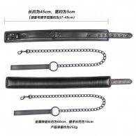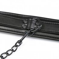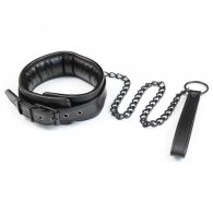 Φετιχιστικό ρυθμιζόμενο Μαύρο δερμάτινο Κολάρο λαιμού chocker με αποσπώμενο μαύρο μεταλλικό λουρί αλυσίδα Naughty Toys. Ένα μέγεθος, υψηλής ποιότητας φετιχιστικό μαύρο ρυθμιζόμενο δερμάτινο Κολάρο λαιμού chocker με αλυσίδα-λουρί της Naughty Toys. Το δέρμα είναι επενδυμένο εσωτερικά με ειδικό foam, έτσι ώστε να 1) έχει άνετη επαφή με τον λαιμό 2) να μην προκαλεί εκδορές και μώλωπες στον δέρμα γύρο από τον λαιμό και 3) Όσο πιο ισχυρό δέσιμο/σφίξιμο