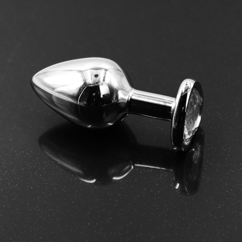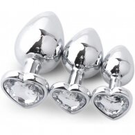 Naughty Toys Jewelled Heart shape Metal Beginner's Butt Plug 7 cm. Fetish roleplaying anal games with metal sex toys. Delve into the heart of your pleasure with this high grade polished Alu metal, clear jewelled butt plug. With 6,2 cm (2.5 inches) of insertable length, this smooth lightweighted 62gr metal plug is perfect for those just beginning their anal play love affair. Just add lube to embark on an anal adventure.