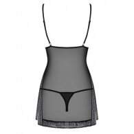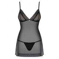 Sensual chemise from Obsessive for hot nights with your lover. Delicate see-through mech babydoll with delicate lace edges and tempting slits on the hips. Comfortable, sexy wear with charming pendant decoration. Set includes a matching string as well to make your evening outfit complete.